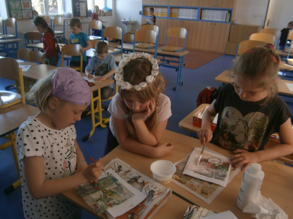 25. 5. 2015 V 1.oddělení děti lepily gázu na papírový rámeček. Někteří ho vylepšily obrázkem vytvořeným pomocí ubrouskové techniky. Vznikly moc hezké obrázky. 26 / 5 / 2015 VS