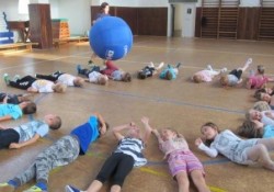 Dnes jsme se první dvě hodiny v tělocvičně pěkně protáhli. Byl pro nás připraven pestrý program her s použitím velkých míčů, které nás měly pomoci stmelit do jednoho třídního týmu. Hlavním cílem však bylo naučit se respektovat pravidla, být ohleduplný a vzájemně si pomáhat. Vydovádění jsme pak byli obdařeni diplomy a sladkou odměnou. Pak jsme zasedli opět do lavic, abychom pokračovali v tom nejdůležitějším úkolu - v učení.