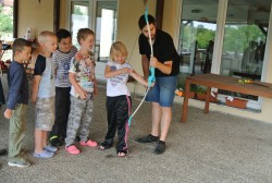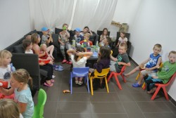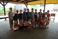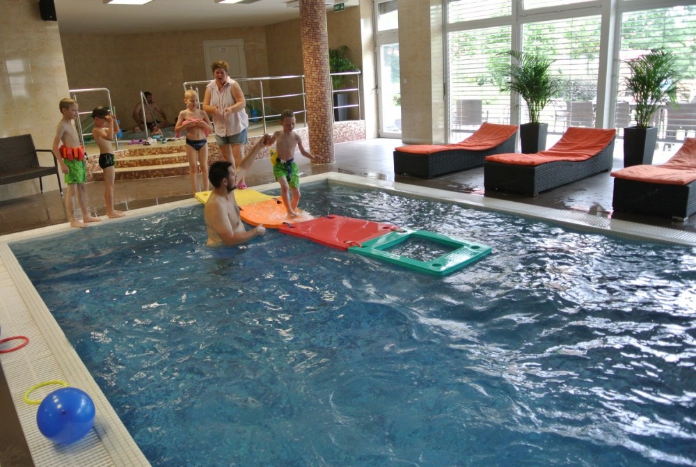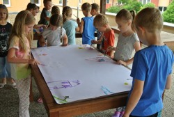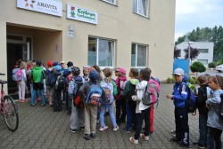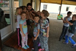 Dnes jsme prožili úžasné sportovní dopoledne v centru Hastrmánek. Nejprve jsme kvůli dešti plnili soutěžní úkoly na terase - stříleli jsme z luku, malovali jsme společný obraz a závodili v taneční soutěži. Potom jsme se přesunuli k bazénu, kde se půlka třídy snažila ve vířivce foukáním do balónků dát co nejvíce gólů do soupeřovy branky, druhá půlka lovila v bazénku kroužky, plavala a na závěr seskakovala z překážky do vody. Pak se obě půlky prostřídaly. Třetí úkol byly různé hrátky s kartičkami o body. Na závěr nás čekalo vyhlášení mezi třídami - každá třída v něčem zvítězila, takže jsme odcházeli všichni spokojení, dokonce všichni obdrželi dárek! Moc děkujeme všem organizátorům za báječně prožité dopoledne, všem se nám moc líbilo!!!