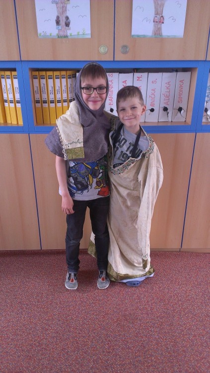 Celá republika oslavuje 700. výročí od narození Karla IV., a proto jsme se o tomto panovníkovi chtěli dozvědět co nejvíce. Zajímala nás i doba, ve které žil. V úterý jsme se dozvěděli o životě Karla IV. a době, ve které žil, z prezentace a také z videí Dějin udatného českého národa. Ve dvojicích jsme měli za úkol zjistit o jednotlivých členech jeho rodiny - jméno, příbuzenský vztah a dobu žití. Ve středu jsme si poslechli středověkou hudbu a seznámili jsme se středověkými hudebními nástroji. Některé nástroje jsme si poslechli a podívali se, jak se na ně hraje. Ve čtvrtek jsme vytvořili rodokmen Karla IV. a podívali si na film "Noc na Karlštejně". V pátek jsme si zahráli hru "Riskuj" (otázky ze života Karla IV.) a plnili jsme úkoly z pracovního listu. Ukázali jsme si, jak v té době počítali - prstová násobilka. Potom jsme se šli podívat na představení, která si pro nás připravili spolužáci. Páteční den jsme ukončili ukázkou a zkoušením historického oblečení, zbroje a meče právě z období Karla IV. Celý týden pro nás byl velice zajímavý a dozvěděli jsme se spoustu nových věcí.