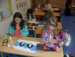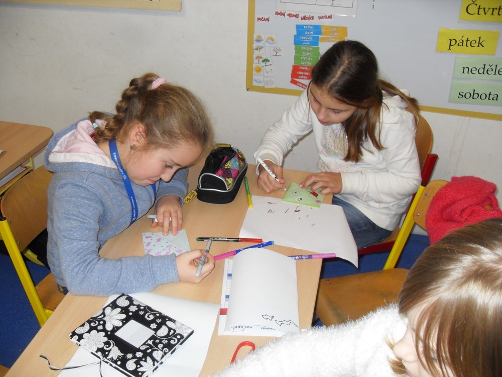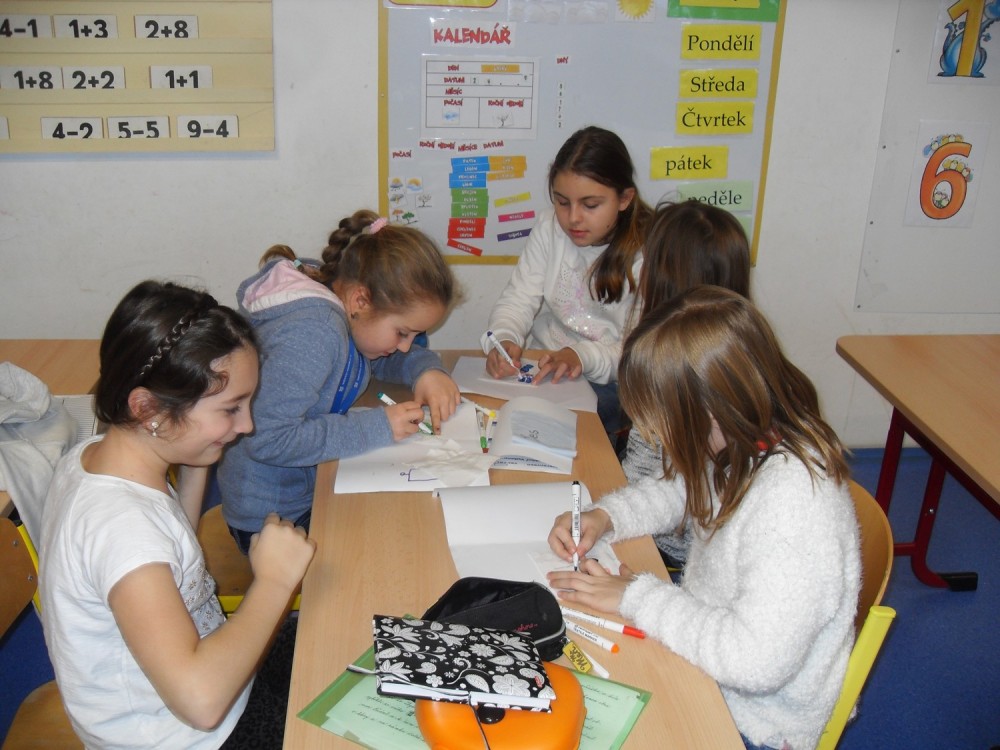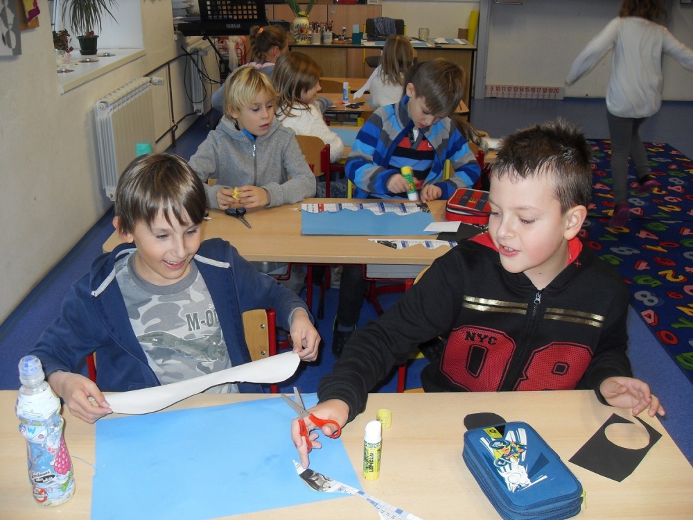 16. 1. 2016 - malování fixem na textil, kapsička naplněná čočkou - teplo do kapes - rohová záložka do knihy - zimní radovánky na hřišti - výzdoba nástěnek - tučňáci na sněhu, ledu - spolužáci předvádí své hudební nadání 16 / 1 / 2016 KV
