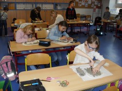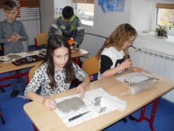27. 2. 2016 každý si vytvořil vlastní papírovou šablonu, kterou přenesl na keramickou hlínu tvoříme pomoci plasteliny a alobalu vyměňujeme si nálepky 27 / 2 / 2016 KV