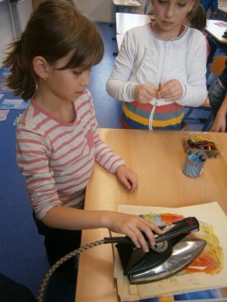 Enkaustika je technika malování horkým voskem. Použili jsme žehličku, voskovky a vznikly nádherné obrázky.