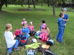 V pátek 18. září bylo pro děti školní družiny připraveno skautské odpoledne v areálu Pod kaštany pod vedením p. Veroniky Morongové. Děti byly rozděleny do tří družstev, soutěžily v pomyslné stavbě chatrčí, domů, paláců a hradů. Odměnou byly zlaté kamínky dle umístění družstev. Odpolední svačinka všem chutnala. Druhá polovina her byla na honěnou s šátky – Liščata. Počasí se vydařilo, odpoledne bylo pro děti příjemné zpestření prožité v přírodě. Pokud by chtěl někdo z dětí navštěvovat skauty pravidelně, kontaktujte p. Veroniku Morongovou tel:722 948 984, www.quercus.estranky.cz . Skautům Modřice moc děkujeme a těšíme se na další spolupráci - vychovatelky ŠD. Další fotky jsou na netu. http://95modrice.rajce.idnes.cz/