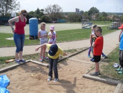 27.5. bylo pro děti školní družiny připraveno sportovní odpoledne. Děti soutěžily v hodu na cíl, běhu a skoku z místa. Turnaj v kopané pískal sudí pan Kalvoda se synem Markem, oběma moc děkujeme. Sestavena byla tři družstva. Každý hrál, jak nejlépe uměl. Pochvalu za výkon v kopané dostala od rozhodčího Adélka a Saša. Počasí se vydařilo, odpoledne na hřiští bylo pro děti příjemné zpestření.