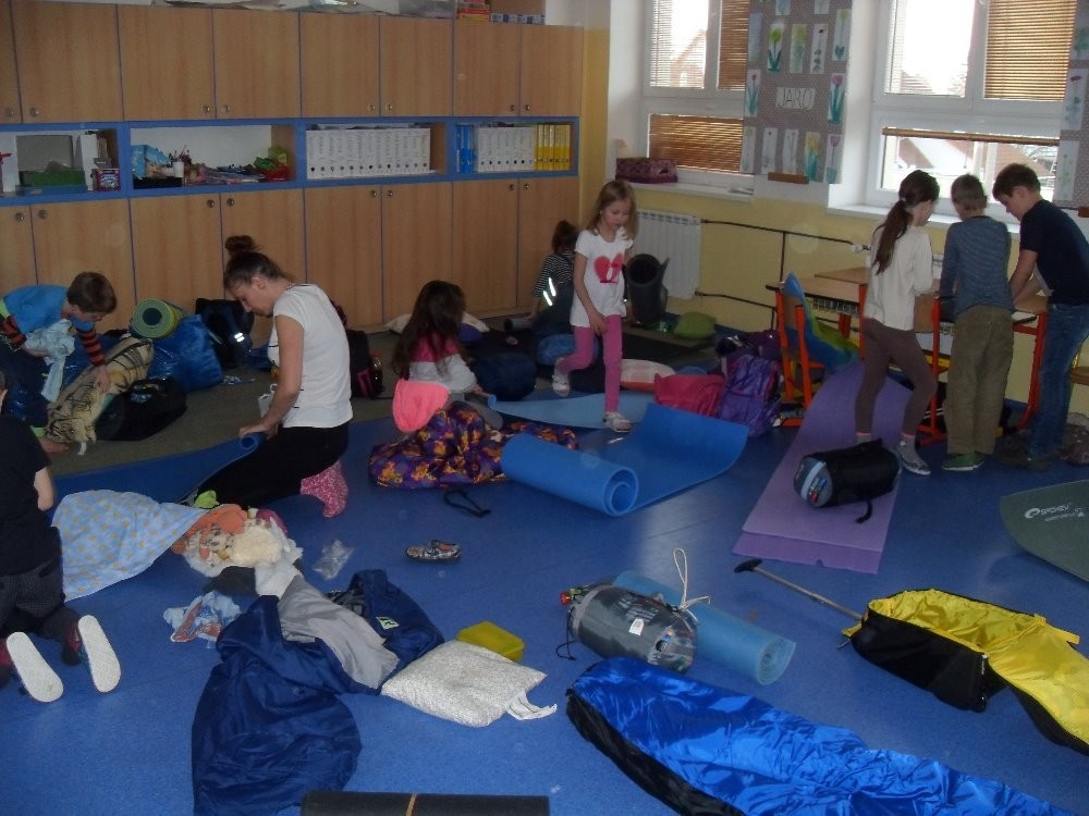 S dětmi jsme se sešli v 18 hodin, uložili spacáky, karimatky a program mohl začít.
