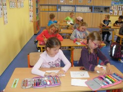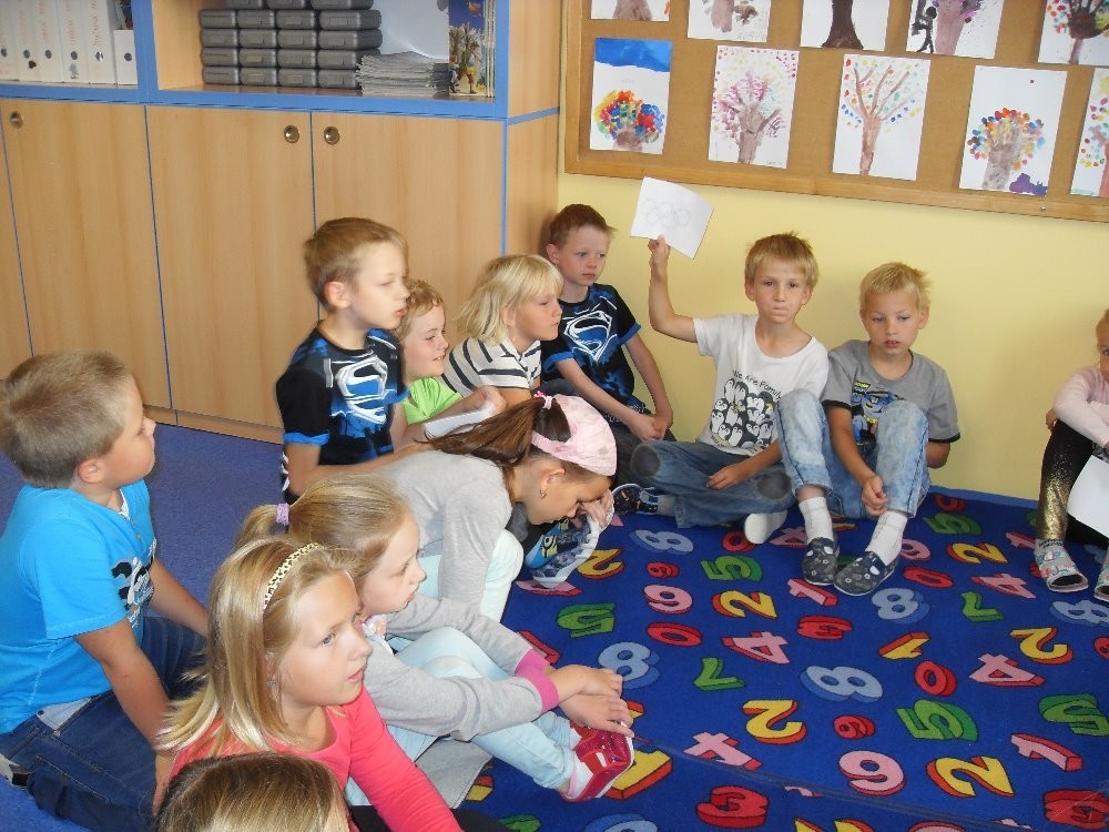 V rámci dne jazyků, který u nás v pondělí proběhl, jsme si přopomněli letní olympijské hry. Skládali jsme puzzle, ze kterých jsme vyluštili některé sporty, zkoušeli jsme překládat a srovnávat slovíčka - protože jsme si vybrali němčinu, nebylo to nic lehkého!, přečetli si něco o historii OH, každý namaloval svoje vylosované slovíčko a na závěr jsme řešili kvíz, abychom zjistili, co jsme si zapamatovali. Naše výtvory jsme společně nalepili na plakát a teď už se těšíme, až si také prohlédneme práce našich spolužáků z ostatních tříd.