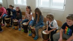 V pondělí 20.3. jsme se zúčastnili zajímavého výukového programu. Vyzkoušeli jsme si, že hrát se dá na ledacos, třeba i na vlastní tělo. Seznámili jsme se s neobvyklými hudebními nástroji- africkými bubny, djembe, dunduny, balafonem, harfou kora a také jsme si vyzkoušeli,jak si na ně umíme společně zahrát.