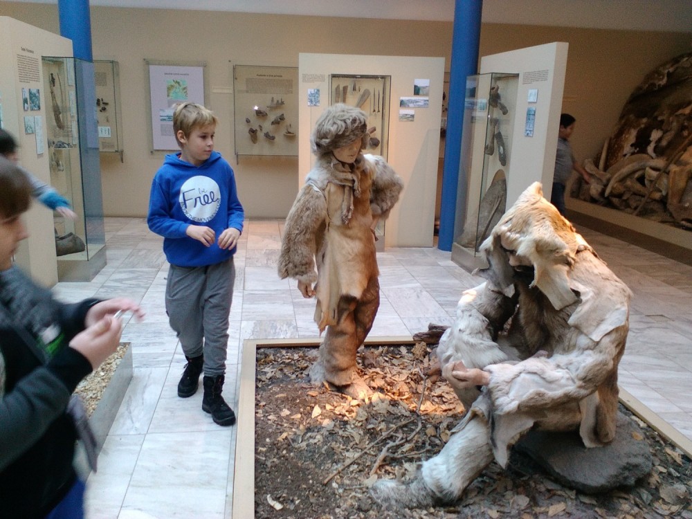 Ve čtvrtek 2.února jsme se vydali s paní učitelkou na výuku vlastivědy přímo do terénu - do Anthroposu do Brna. Učivo, které právě probíráme se týká pravěku, doby kamenné, bronzové a železné. Proto nám přišlo velmi vhod, že jsme si mohli tuto dobu představit na vlastní kůži. Také jsme si ohmatali pěstní klín, podle kterého se vlastně doba kamenná nazývá. Mladý pan průvodce nás provázel celou expozicí a velmi poutavě nám vyprávěl i nejrůznější příběhy. Byl to pro nás všechny velmi příjemný a nevšední zážitek.