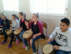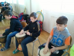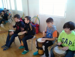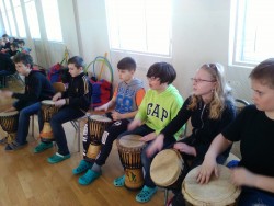 Dnes jsme měli zajímavou hodinu hudební výchovy, ve které jsme se seznámili s perkusními nástroji, bubny i hrou na tělo Byly nám představeny nástroje jako africké bubny, djembe, dunduny, africký xylofon - balafon, africká harfa kora. Vyzkoušeli jsme si hru na některé z vyjmenovaných nástrojů za vedení hudebníka Jiřího Boudy. Hodina velmi rychle uběhla a zanechala v nás velmi příjemné zážitky.