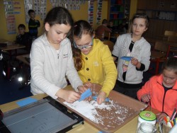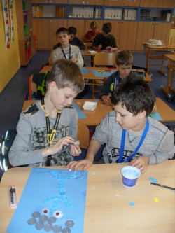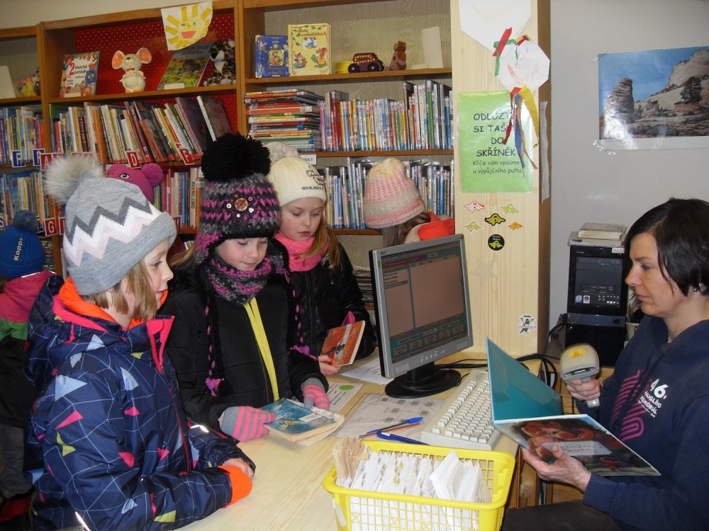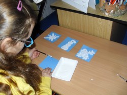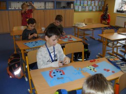 14. 1. 2017 Práce 2.oddělení začátkem ledna - 3D vločky - návštěva knihovny - zimní návrhy lepené z víček 14 / 1 / 2017 KV