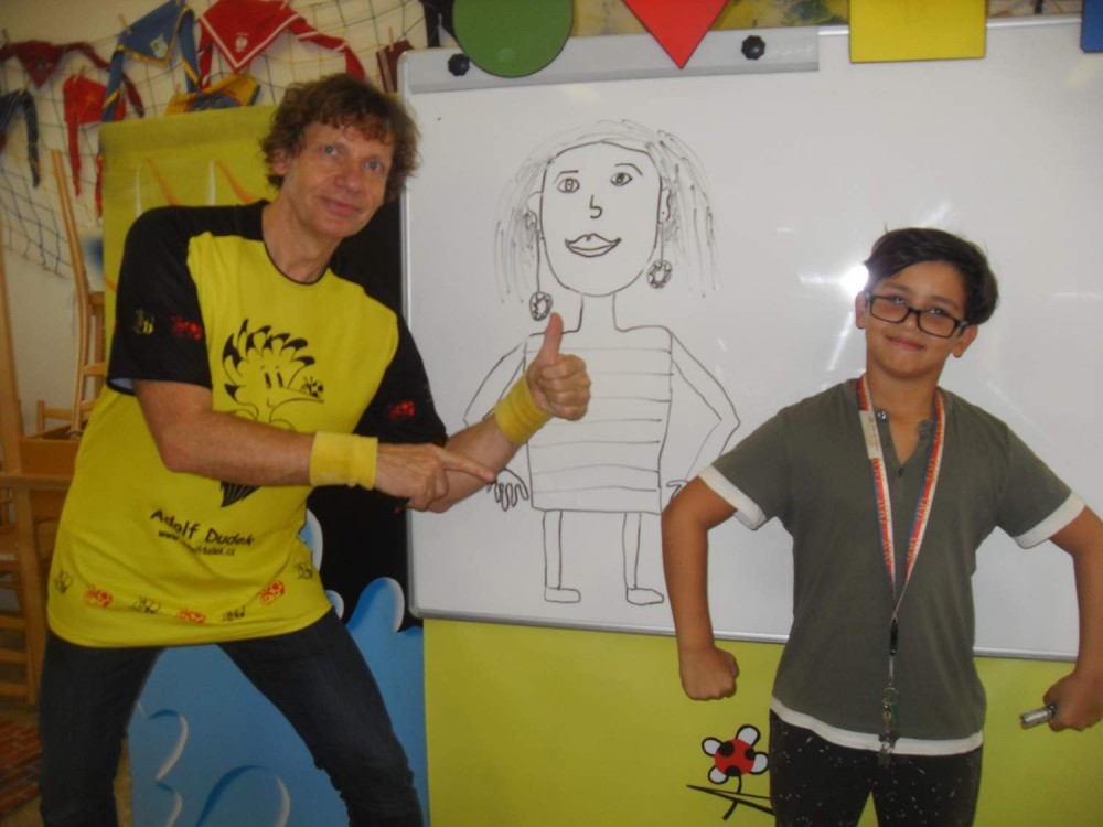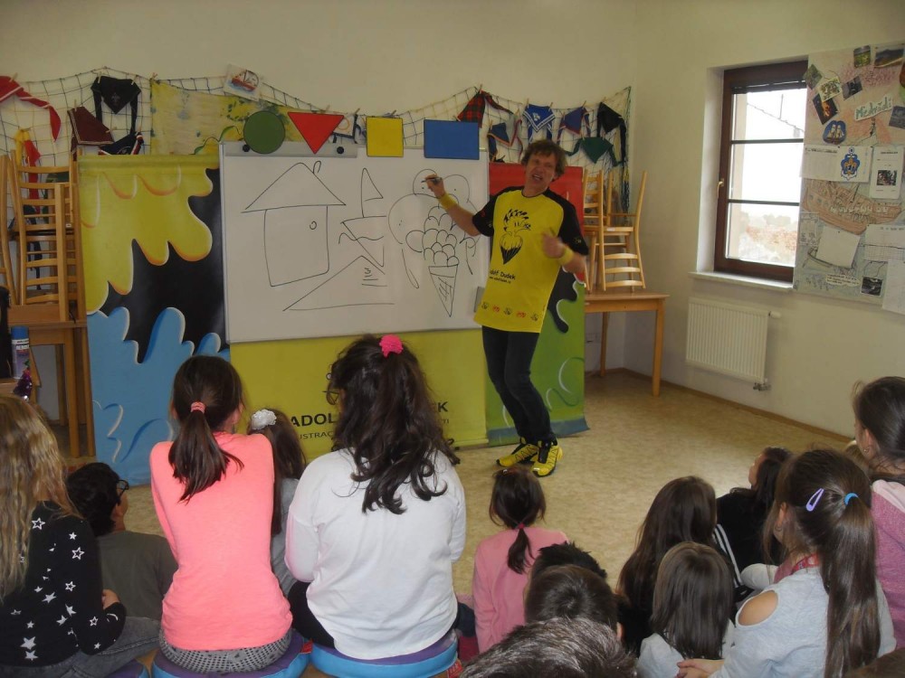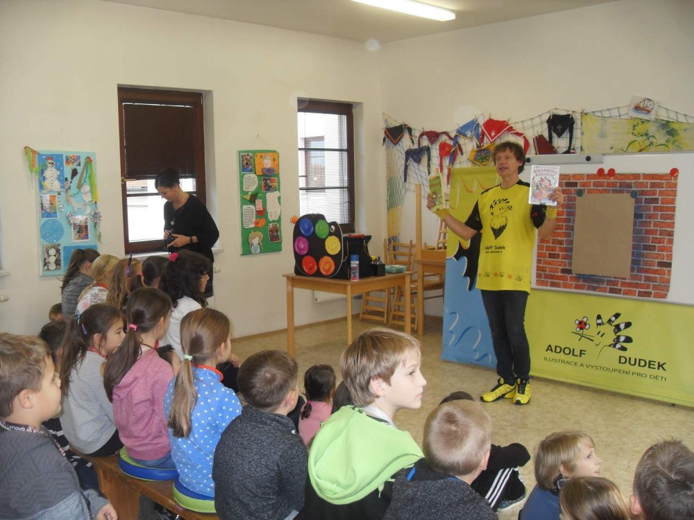 na zábavné setkání s ilustrátorem Adolfem Dudkem.