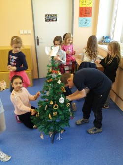 Vánoce se blíží a my jsme si třídu hezky vánočně vyzdobili. Po celou dobu adventního období jsem v hodinách výtvarné výchovy a pracovních činností malovali a vytvářili vánoční výzdobu třídy. Zkusili jsme spoustu nových výtvarných technik.V úterý jsme si ozdbobili stromeček a zazpívali koledy. Doufáme, že se Ježíškovi stromeček bude líbit a nadělí nám pod něj dárky.