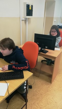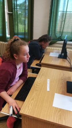 V těchto dnech se naše třída zúčastnila prověřování našich vědomostí a studijních předpokladů prostřednictvím testů SCIO. Líbilo se nám, že jsme pracovali na počítačích v učebně informatiky, kam rádi chodíme. Proto nám ani nepřišlo, že jde o testování, i když leckteré otázky byly zapeklité a trochu nás potrápily. Jak jsme se na ně soustředili, dokládají následující fotografie.