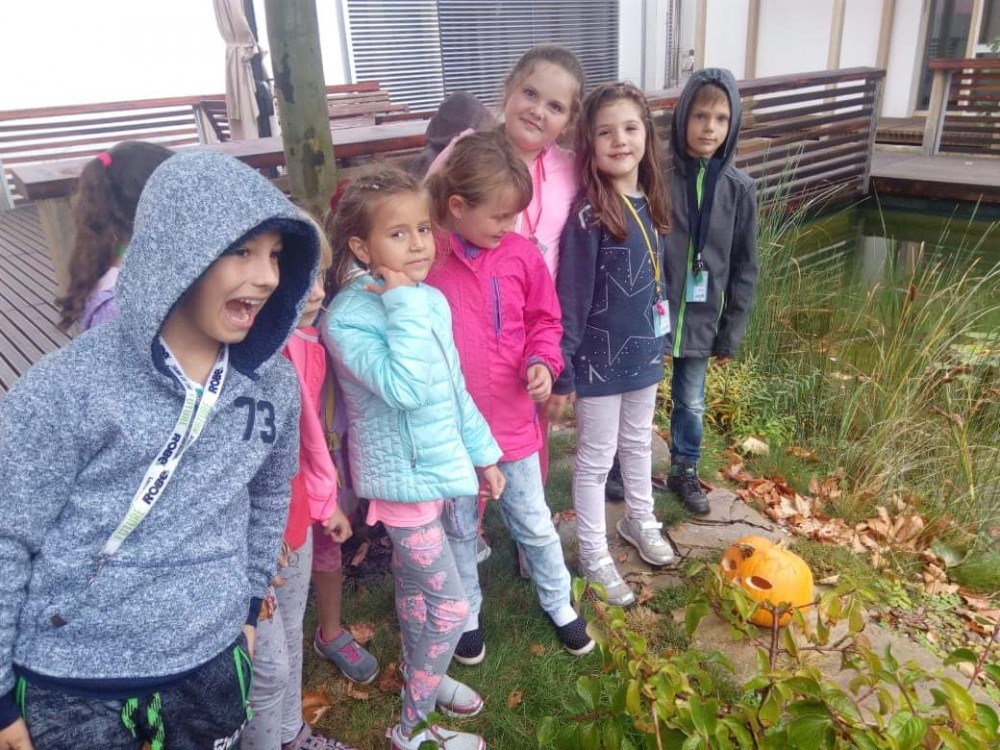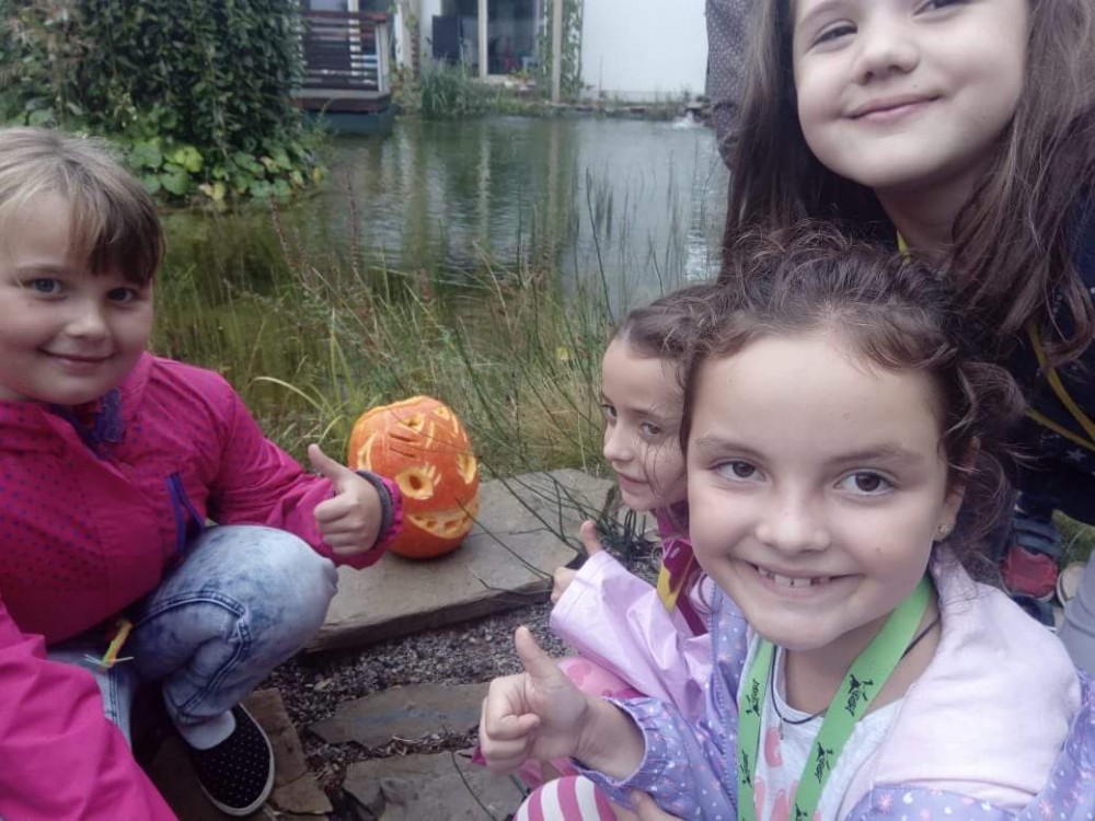 Jitce Kozumplíkové na Dýňobraní k jezírku.