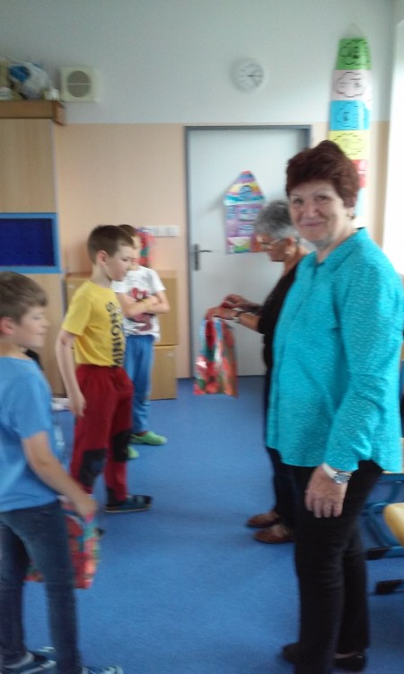 Děti předaly babičkám vyrobené dárečky, které vytvořily ve školní družině společně se svými vychovatelkami. Babičky měly přichystané sladké dobroty, které rozdávaly dětem v jednotlivých odděleních školní družiny.
