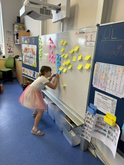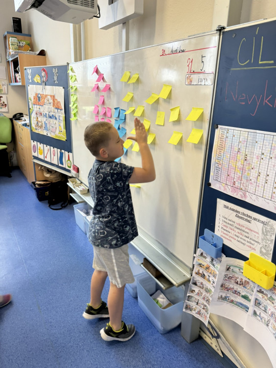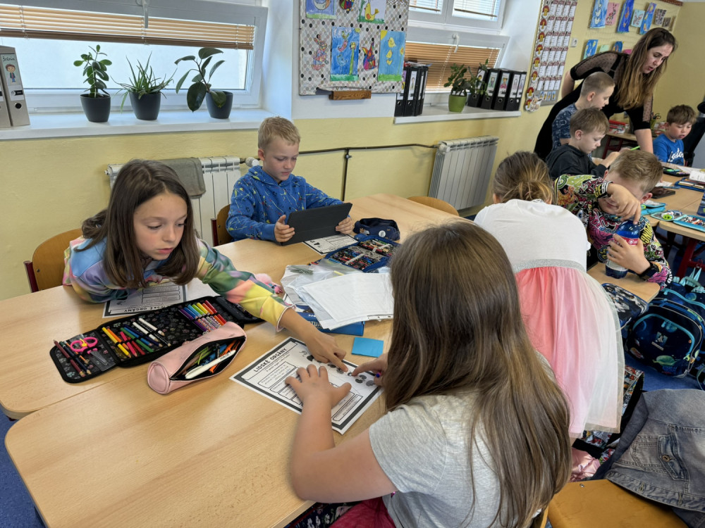 Program Začít spolu není jen o centrech aktivit, ale také o snaze zapojit do procesu učení i rodiče. Proto jsem s velkou vděčností přijala nabídku paní Matějkové, která sestavila pro děti výukový program zaměřený na prohloubení znalostí a vědomostí o lidském těle. Výuková lekce byla postavena na modelu E-U-R, tedy evokaci, uvědomění, reflexi a všechny aktivity byly podpořeny rozvojem digitálních kompetencí. Během dvou vyučovacích hodin jsme stihli vyhledávat informace hlasem, slepili jsme mozek, rozpohybovali jsme obrázek, díky digitálním technologiím jsme si mohli prohlédnout části lidského těla ze všech stran, nebo se podívat, jak to vypadá uvnitř našeho těla.