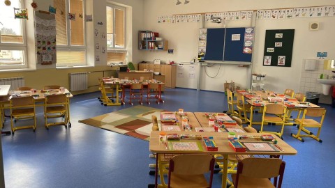 Zde děti s napětím čekaly na rozřazení do jednotlivých tříd a vyhlížely své nové paní učitelky.