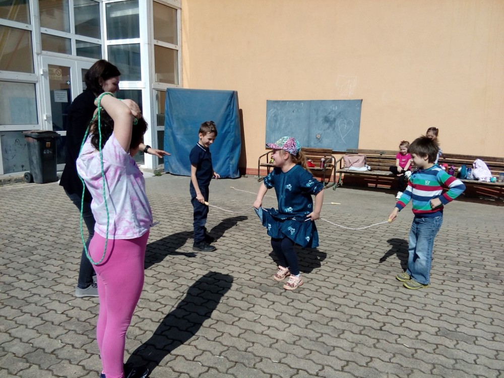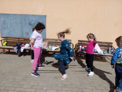 29. 3. 2022 ŠD - 3. oddělení odpoledne na školním hřišti Benešova. Skáčeme přes gumu, švihadlo, hrajeme míčové hry. V budově si hrajeme se stavebnicí, zvířátky, hlavolamem. 29 / 3 / 2022 KV