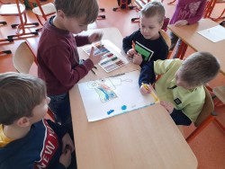 6. 2. 2023 Malujeme sádrové odlitky. Chlapci se pustili do společné autorské kresby. Výtvarka nás prostě baví :) 19 / 3 / 2023 ACh