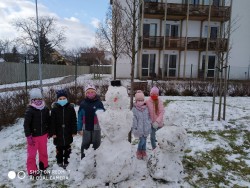 V lednu jsme se snažili trávit co nejvíce času na čerstvém vzduchu. Chodili jsme na procházky po okolí školy. Užívali jsme si zimních radovánek, kdy jsme vyrazili bobovat a na školní zahradě se nám podařilo postavit dva krásné sněhuláky. Společně jsme také oslavili první školní vysvědčení.