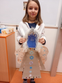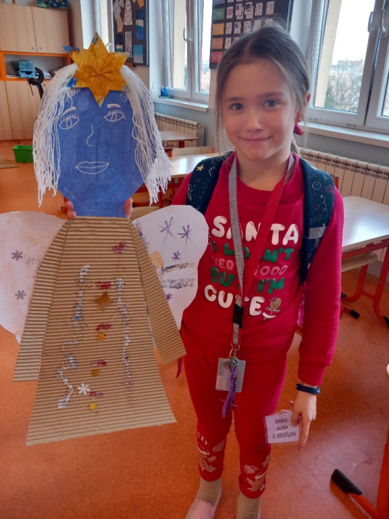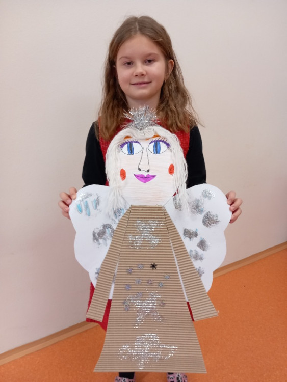 6. 1. 2025 Těsně před Vánocemi jsme si vytvořili anděly z vlnité lepenky, bílého kartonu a pracovali jsme s inkoustem a zmizíkem. Andělé se nám povedli, práce nás moc bavila :-) 23 / 1 / 2025 BJ