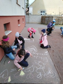 25. 3. 2022 Tvoříme srdce do květináčů a podložky z korálků pro maminky k MDŽ. Kreslíme křídami pro radost a zpíváme písničky v angličtině, maďarštině a ukrajinštině :-) 25 / 3 / 2022 BJ