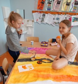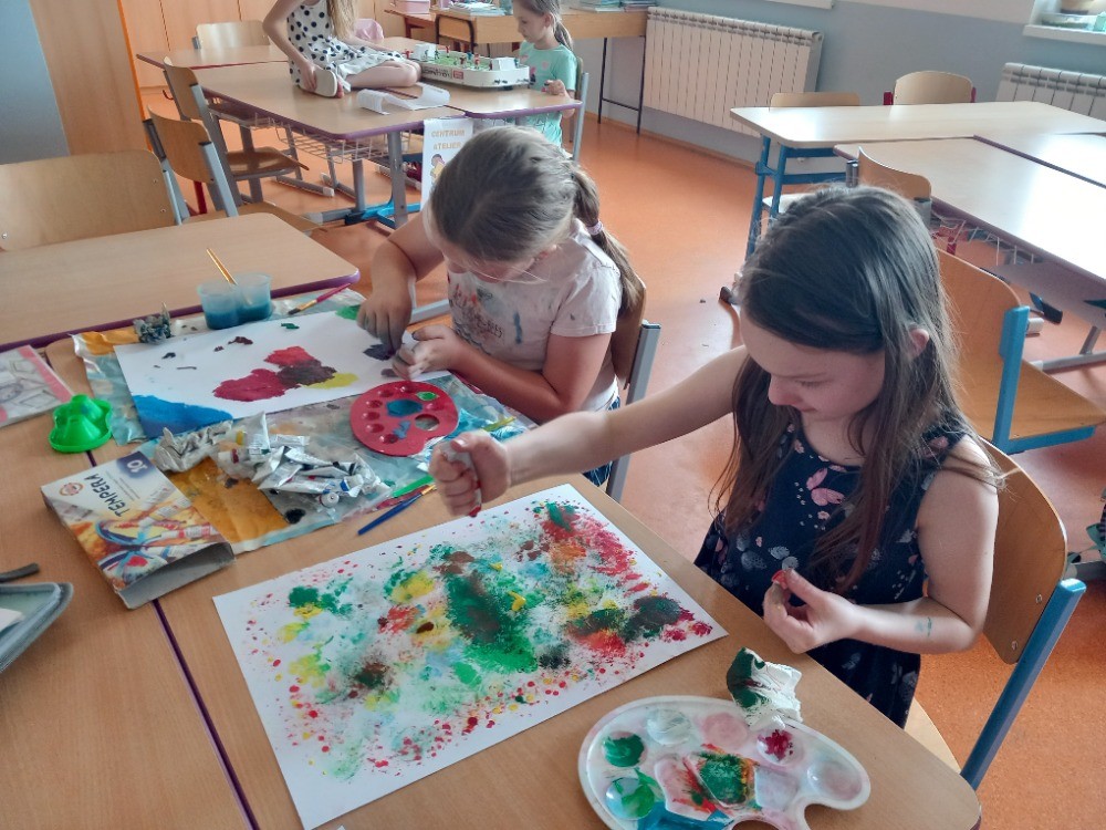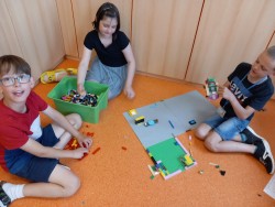 V červnu jsme se věnovali našim oblíbeným činnostem. Navlékali jsme náramky a náhrdelníky z korálků. Stavěli jsme si z Lega. Kreslili podle vlastní fantazie. Na školním hřišti hráli kopanou s 6. oddělením. Nebo jsme si hráli na školu, na rodinu a odpočívali ve stínu. Také jsme si šli koupit do obchodu zmrzlinu a pověděli jsme si něco o penězích a nakupování.