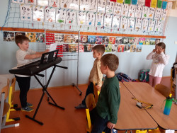 Pokračujeme ve čtení pohádky z knížky od Jiřího Žáčka "Krysáci". Další dvě kapitoly nám opět čte babička Jiřinka Rousová. Po čtení jsme po dlouhé době vyrazili na školní zahradu, kde jsme si zahráli na honěnou a malou kopanou. A toto hezké odpoledne nám zpestřil náš spolužák Maty hrou na přenosné klávesy.