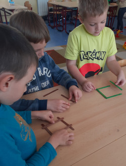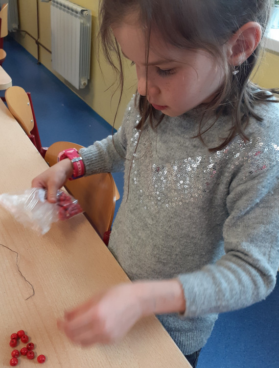 12.5. je Den matek. Naše oddělení tvořilo pro maminky malou dekoraci, na kterou jsme použili barevné dřevěné špachtle, barevné korálky, drátek a jutový provázek.