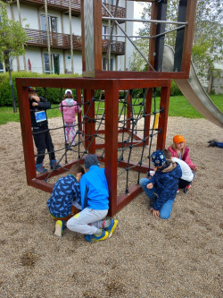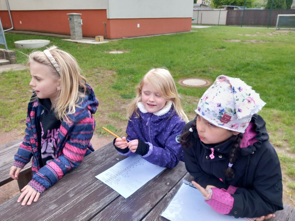 V rámci svátku Dne Země 22. dubna jsme si nejprve v ranní družině povídali o ochraně přírody, o rodinných výletech za krásami naší země a o hledání kešek, tzv. geocachingu. Odpoledne jsme si zasoutěžili v poznávání zvířat z celého světa podle fotografií, které byly rozmístěny po celé zahradě. A tak jsme poznávali, zapisovali do tajenky a radili se. Pro nás prvňáky byla soutěž docela těžká, najít, poznat a zapsat 26 zvířat nám dalo práci. Ale zvládli jsme to na výbornou! Další den jsme si postavili na Plácku hmyzí domeček z klacíků a v trávě u budovy Benešova hledali čtyřlístky pro štěstí. A našli jsme :-)