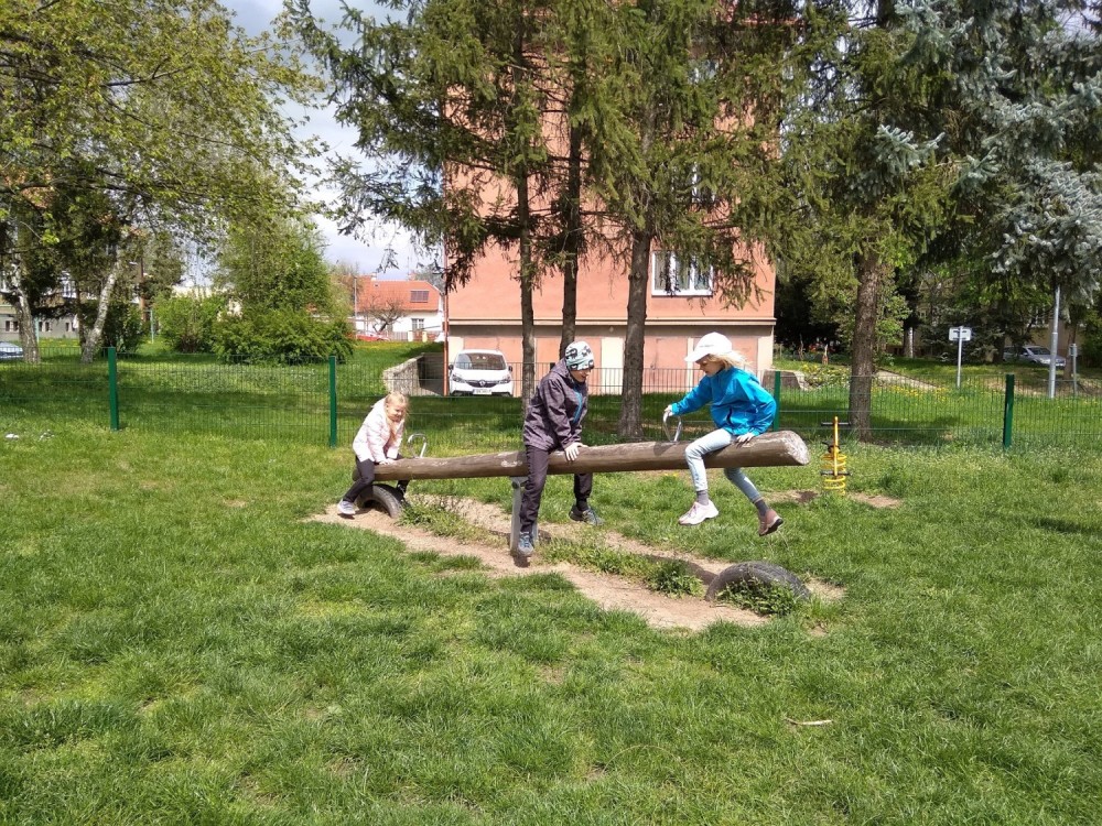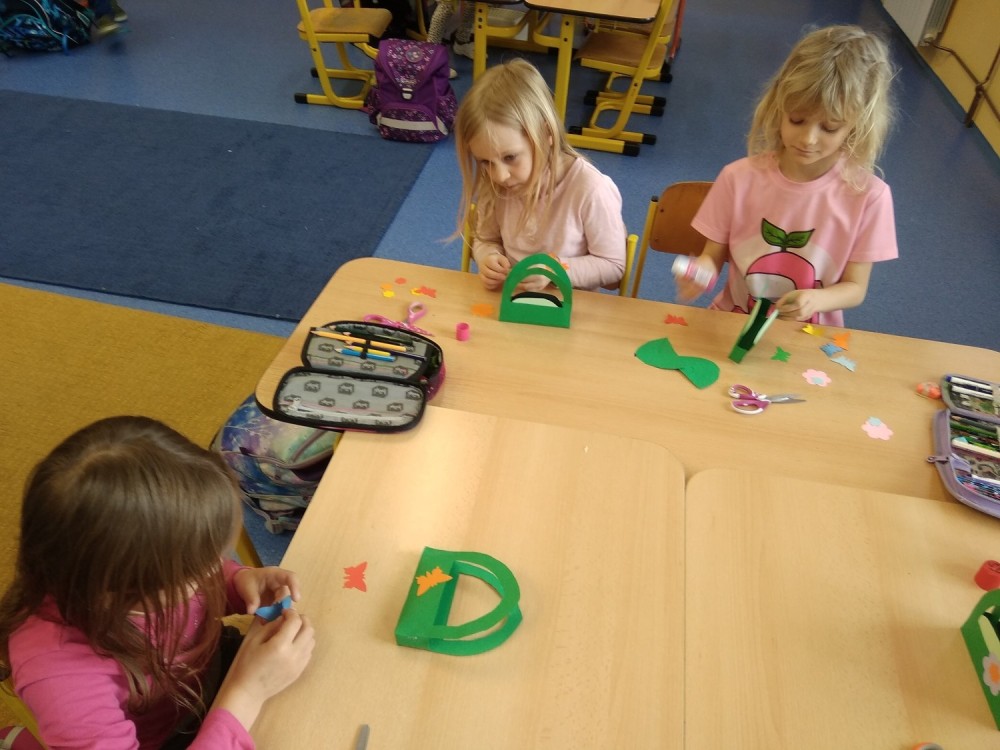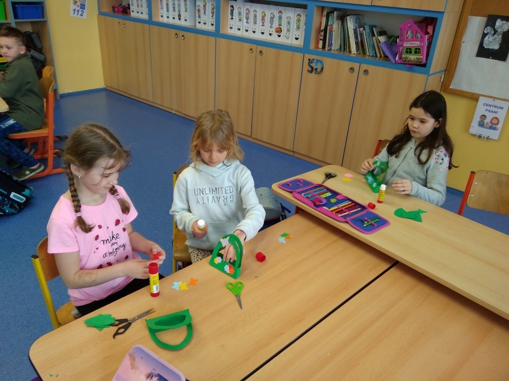 Dubnové tvoření ve školní družině, pobyt na hřišti.