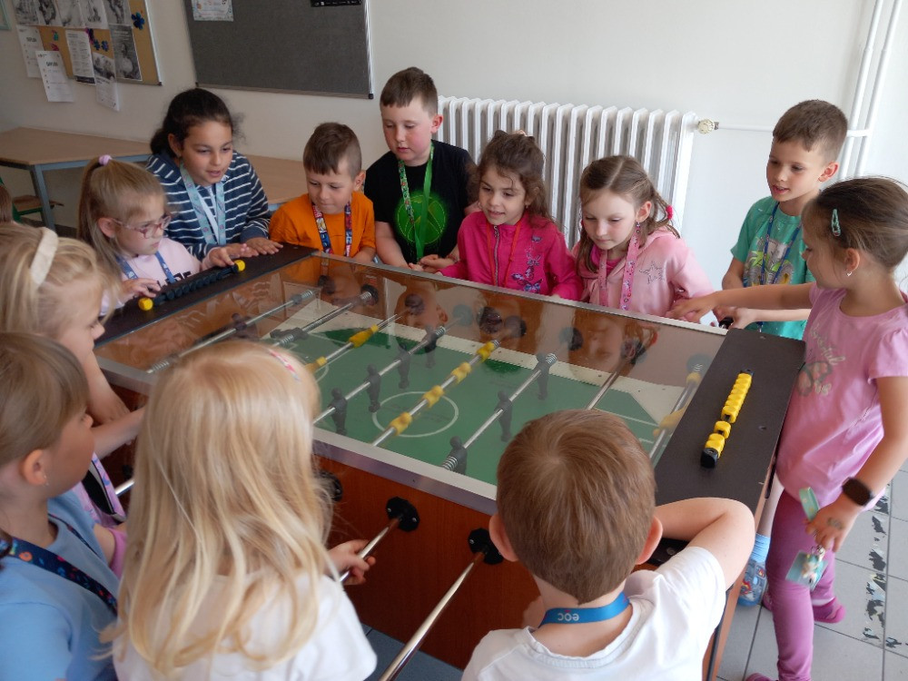 Nedávno jsme se setkali s tím, že mohlo dojít ke zneužití fotografie jednoho našeho spolužáka. Proto jsme si povídali o kyberšikaně. Co to je, jak jí předcházet, komu se svěřit, pokud bychom se ocitli v nějaké podobné situaci. Jsme sice teprve žáky 1. ročníku, ale někteří z nás mají mobilní telefony, také přístup k sociálním sítím, jako je TikTok, Instagram apod. Paní vychovatelka objevila na nástěnce na budově Benešova pěkně zpracované téma o kyberšikaně od starších žáků, proto jsme využili ředitelského volna a vydali se po obědě na malou exkurzi. Někteří jsme tu byli poprvé. Překvapili nás velké chodby, stolní fotbálek a stůl na pin-pong. Samozřejmě jsme si přečetli informace o kyberšikaně, živě jsme diskutovali na toto téma. V dalším patře nás zaujala nástěnka se zajímavostmi o planetě Zemi. Také jsme se zastavili u velkého plakátu na chodbě a pověděli jsme si něco o ekologii. Proč je třeba přírodu chránit, pečovat o ni, třídit odpad. Potom jsme si prošli některé třídy, líbilo se nám v učebně fyziky a dokonce jsme si trochu odpočinuli na vacích :-)