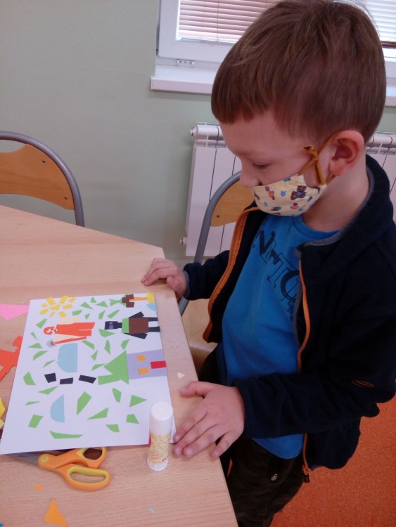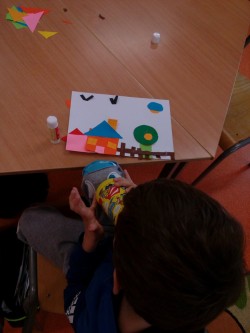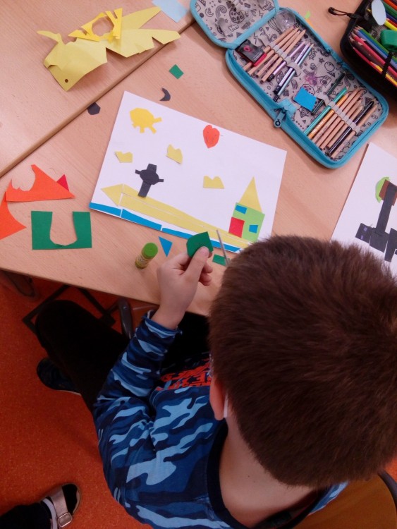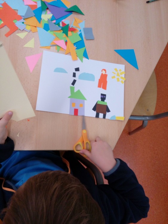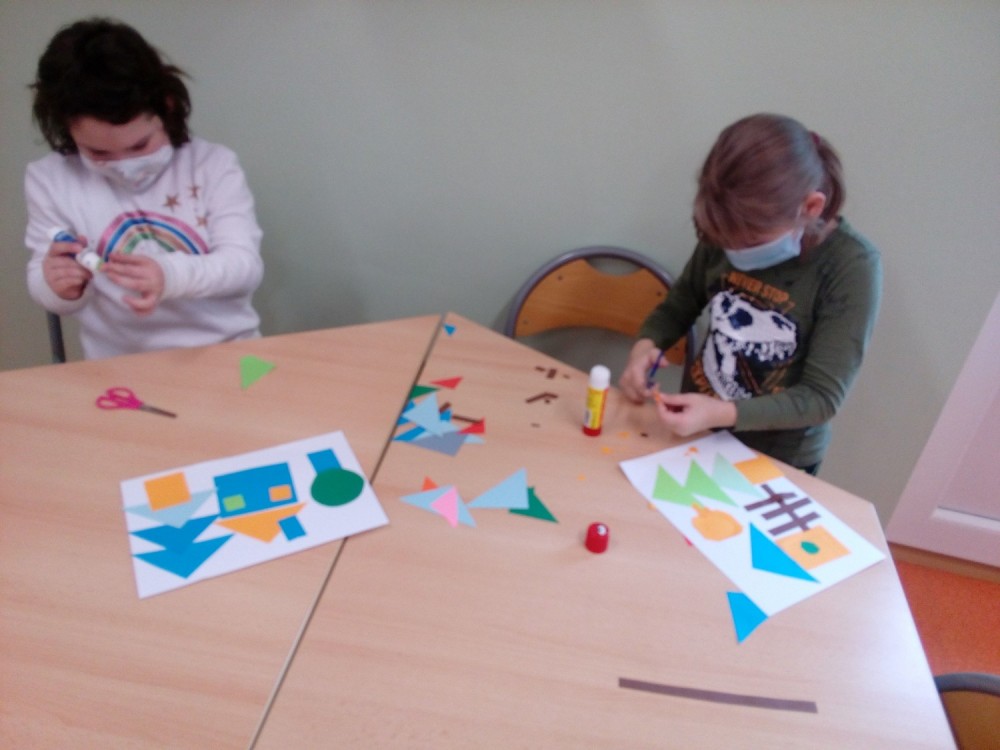2. 2. 2021 Předškoláci tvoří obrázky z geometrických tvarů, které opakují i s paní učitelkou v dopoledních hodinách. Každý si vytvořil obrázek dle vlastního návrhu. Stříháme skládané přání ve tvaru srdce. 7 / 2 / 2021 KV