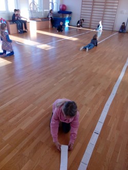 11. 12. 2019 2.oddělení měříme hada z účtenek, vyhodnocení práce na kalendáři skládání puzzl 12 / 12 / 2019 KV