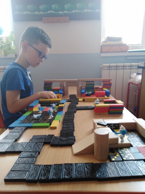 Povedly se nám krásné domečky pro Šmouly :-) Povídáme si příběhy