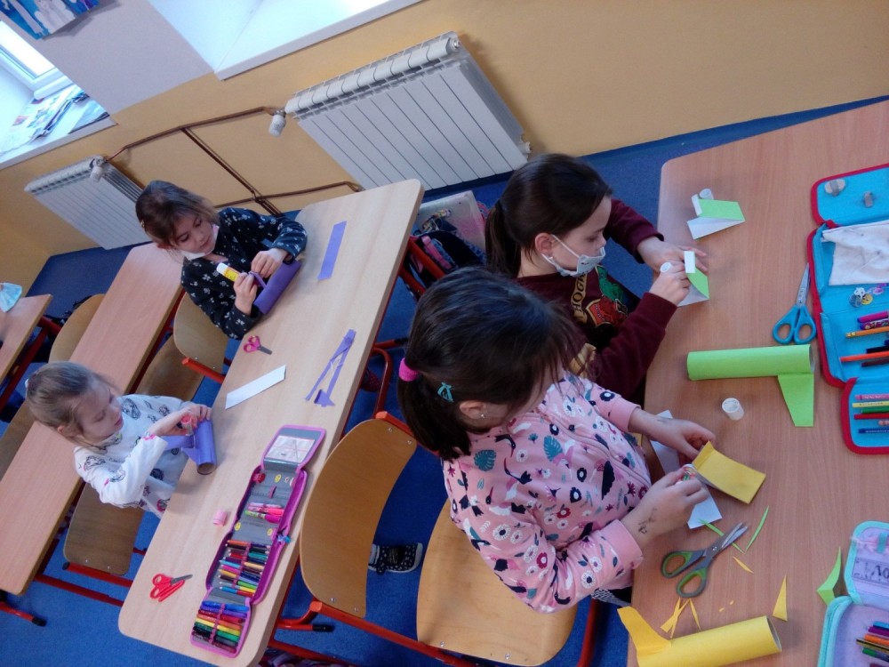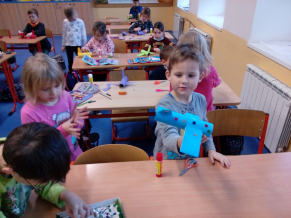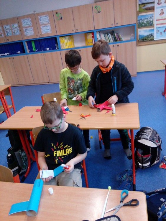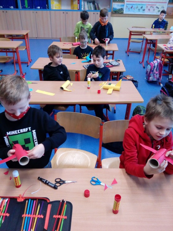 27. 1. 2022 Pohybové hry ve školní družině Rybičky, Honza, výtvarné práce výroba letadla. 28 / 1 / 2022 KV