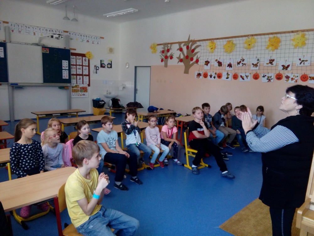 V pondělí se konalo druhé setkání s paní Kafkovou. Žáci v doprovodu klavíru společně zpívali písničky, vytleskávali, tančili.