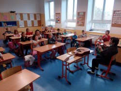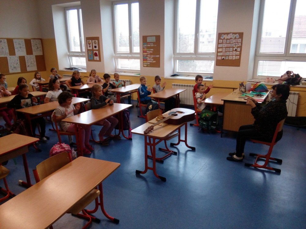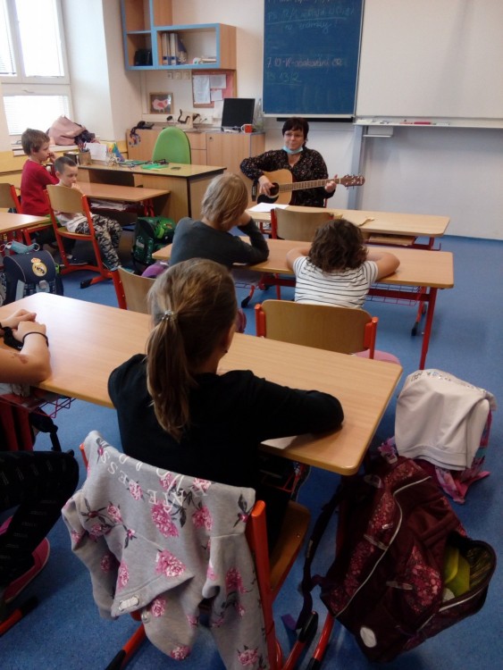 I druhé setkání ve 2.oddělení ŠD s paní Jitkou Kafkovou bylo fajn. Dnes jsme rytmicky vytleskávali a hádali názvy písniček, které paní Kafková hrála na kytaru. Celé setkání proběhlo bez zpěvu. Těšíme se na další setkání.