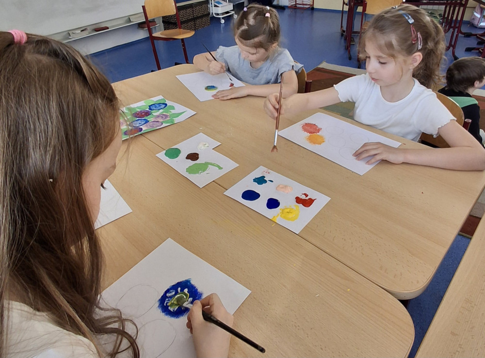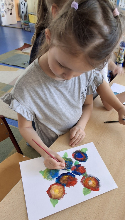 Společně jsme tvořili temperovými barvami jarní kvítí. Venku jsme si uklidili kolem naší školy, protože 22.4. je Den Země a my chceme mít naše okolí čisté. Sbírali jsme vše drobné, co patří do odpadového koše, ale nejvíce je vždy zbytků od cigaret a to hlavně před školou na ul. Komenského. Děkuji všem rodičům, kteří na  moji prosbu vložili  dětem do školních aktovek pracovní rukavice👍. Navštěvujeme také nejen naše školní hřiště,  ale i jiná dětská hřiště, kde se vždy zabavíme zajímavou hrou.🙂