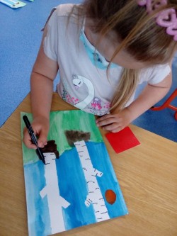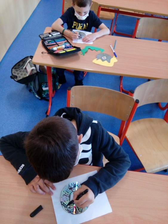 Čteme z knihy Co vyprávěla houpací síť, Jiří Šandera. Přípravná třída tvoří ve školní družině jarní téma. Pomocí vodovou varvou malujeme břízu, dotvořeno pomocí černého fixu. Procvičujeme motoriku stříháme šnečka, malujeme domeček. Na hřišti se učíme skákat přes švihadlo a chytat míč.
