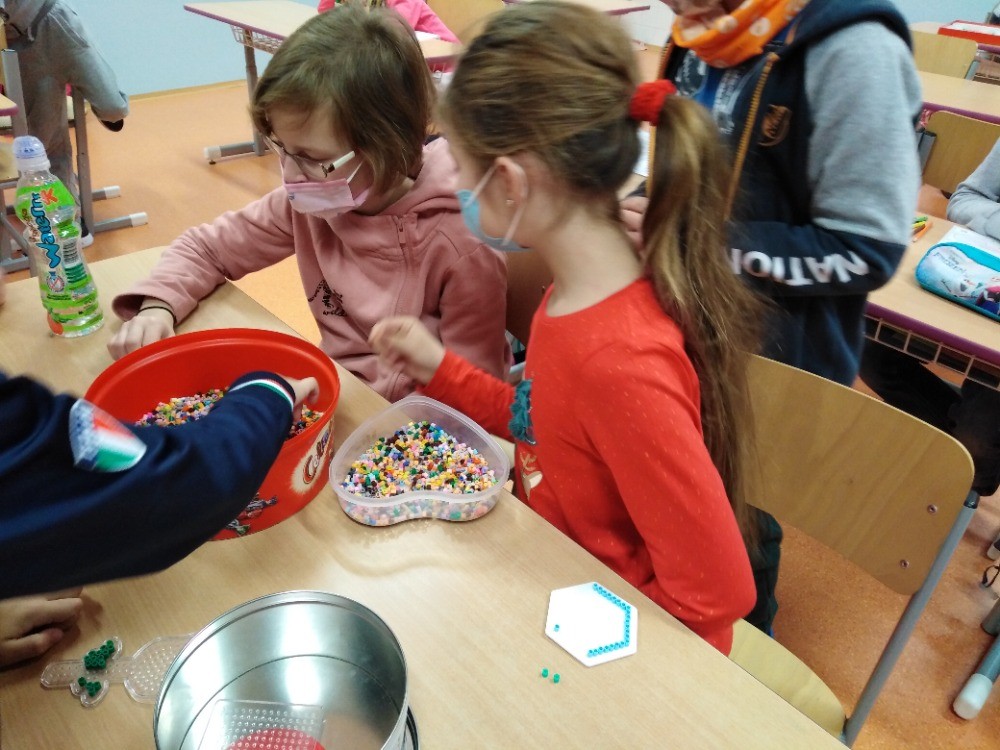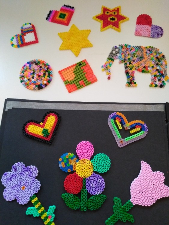 V poslední době tvoříme barevné podložky z nažehlovacích korálků.