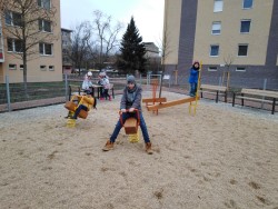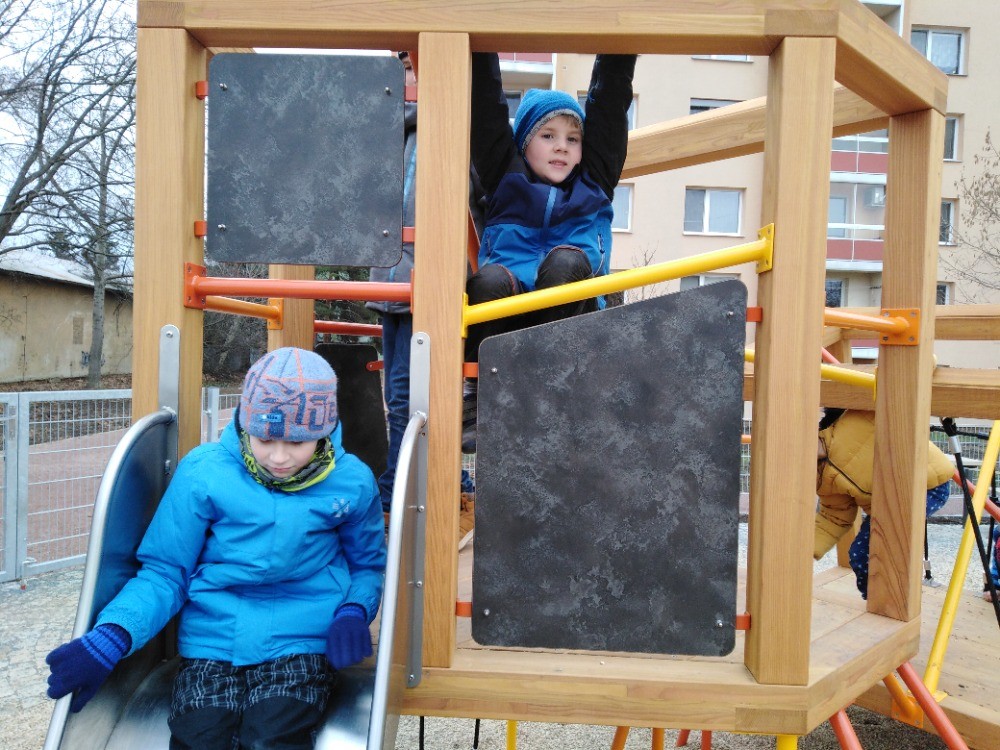 Při jedné z procházek jsme objevili na ulici Husova nové dětské hřiště,