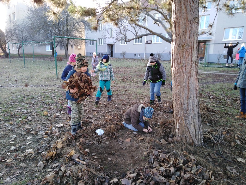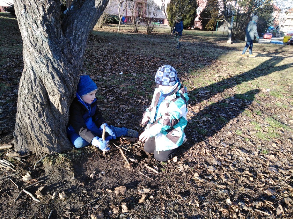 Na Plácku jsme si pod borovicí udělali domeček, kde si rádi hrajeme