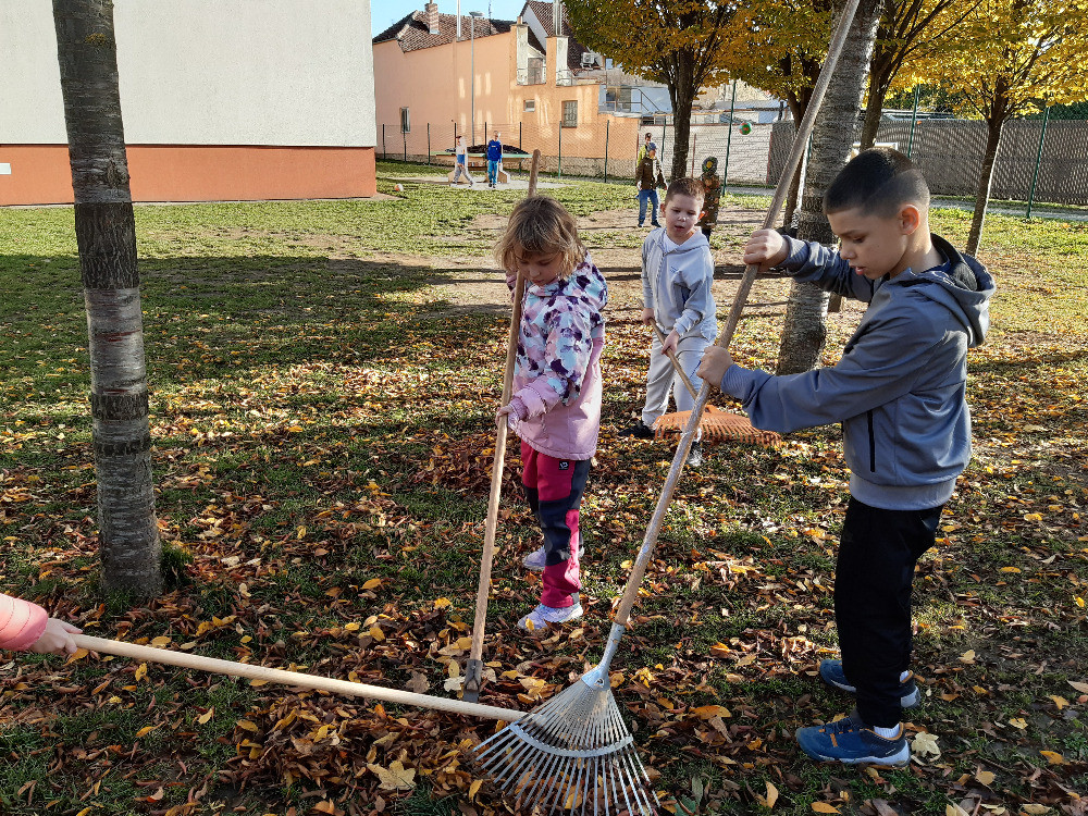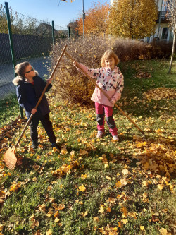 Rozhodli jsme se přiložit ruku k dílu a v rámci družiny pomoci s úklidem naší školní zahrady. Jelikož se na ní začalo hromadit listí, tak jsme popadli hrábě a pytle a dali se do práce. Díky tomu, že se nás hodně zapojilo, tak nám šla práce pěkně od ruky. Nejenže listí ze země rychle mizelo, ale i my jsme si u práce užili zábavu.