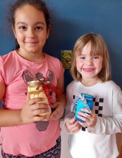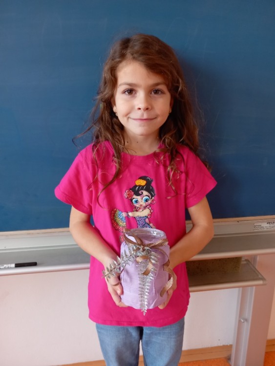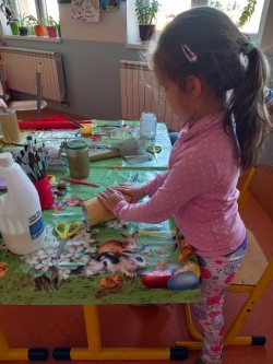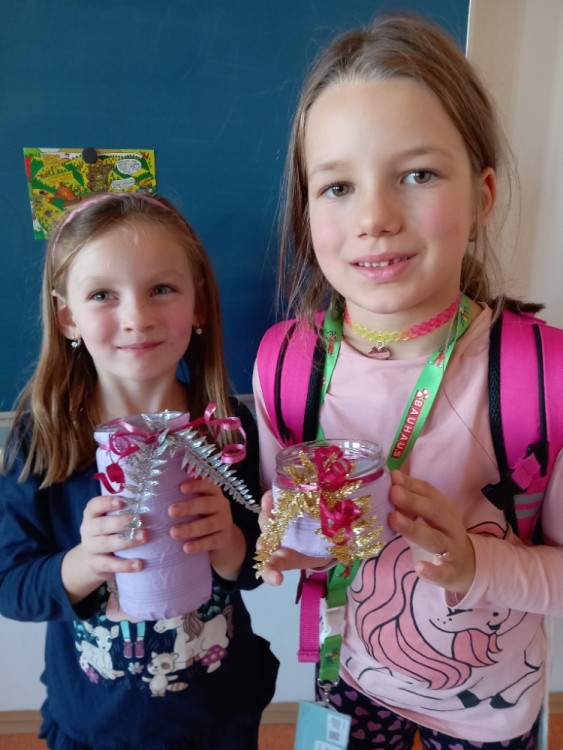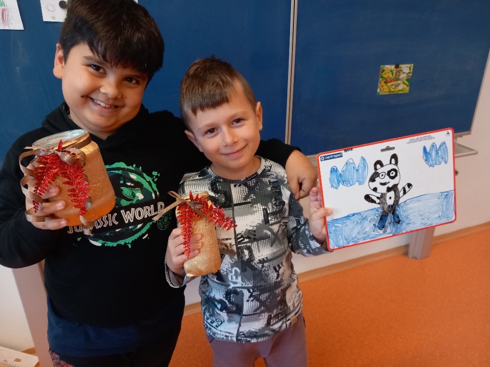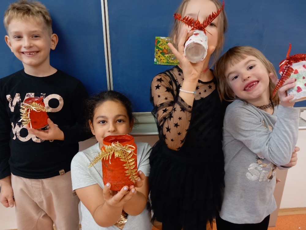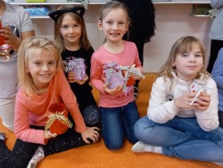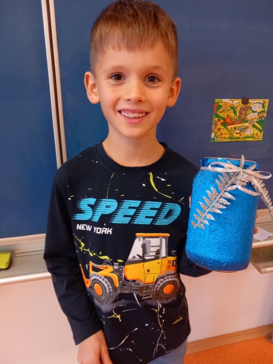 Už před návštěvou hřbitova jsme začali tvořit lucerničky ze zavařovacích skleniček. Dalo nám docela práci naměřit si papír a správně ho nalepit na sklenici. Lucerničky jsme zdobili s pomocí starších kamarádů nebo paní vychovatelky. Tvoření nás moc bavilo a někteří si vyrobili víc lucerniček, které mohou sloužit i jako svícen do bytu či domu.