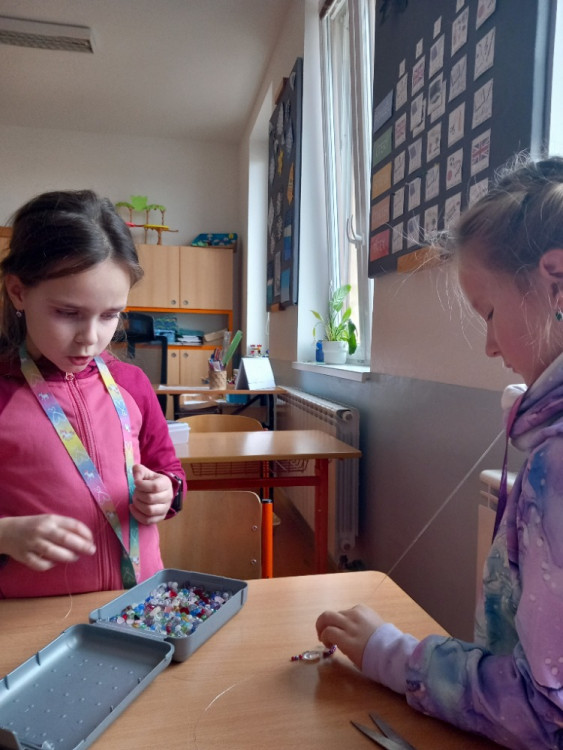 23. 1. 2025 Navlékáme korálky a tvoříme náramky a náhrdelníky, děvčata i chlapci. Procvičujeme jemnou motoriku a navrhujeme tak pěknou bižuterii nejen pro sebe, ale i pro svoje blízké. 23 / 1 / 2025 BJ