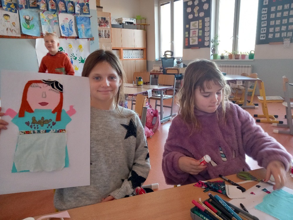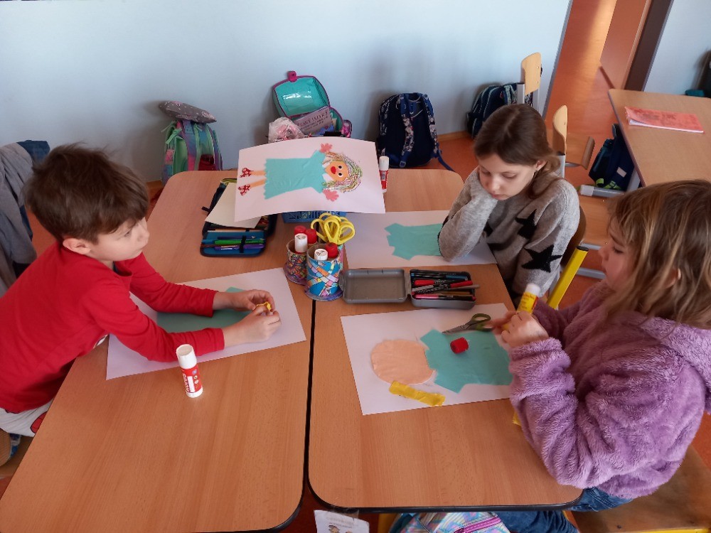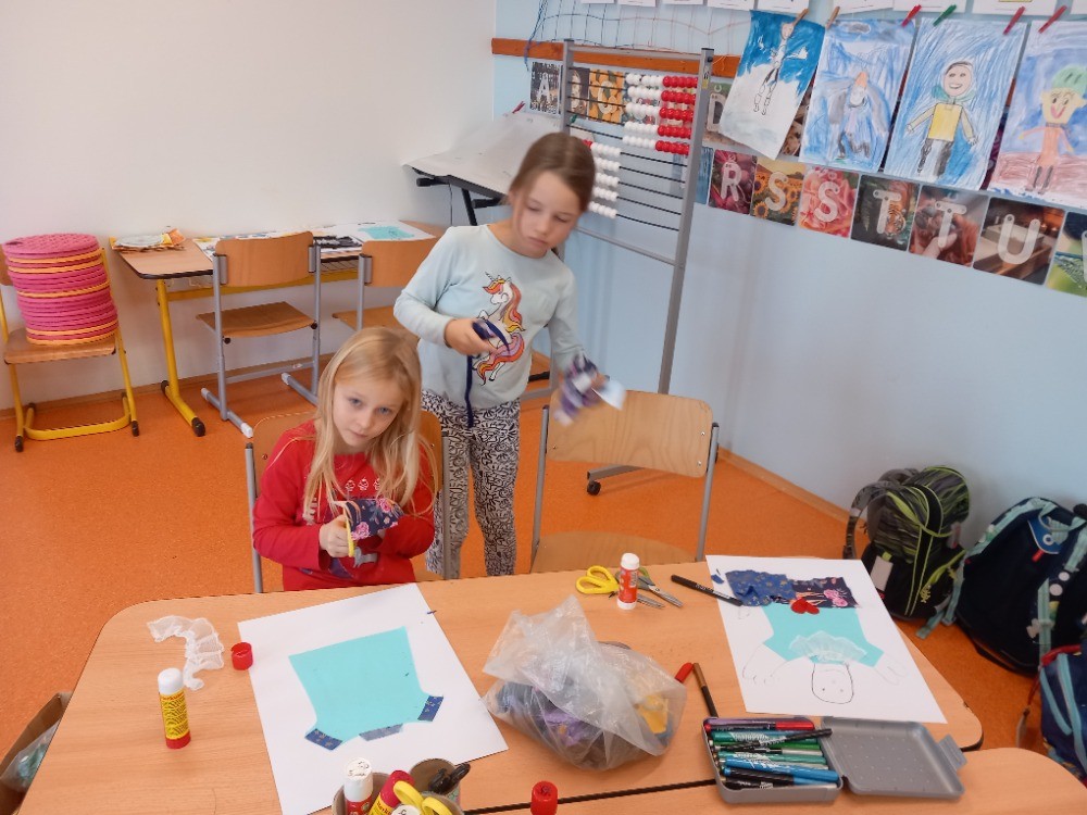 17. 1. 2024 Po vzoru tvoření spolužáků ze 2. odd. i my jsme si zkusili navrhovat oděvy z ústřižků látek. Práce nás bavila a někteří jsme vytvořili i více návrhů. 17 / 1 / 2024 BJ
