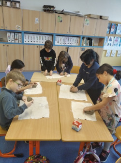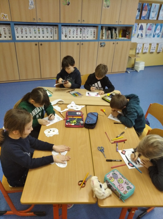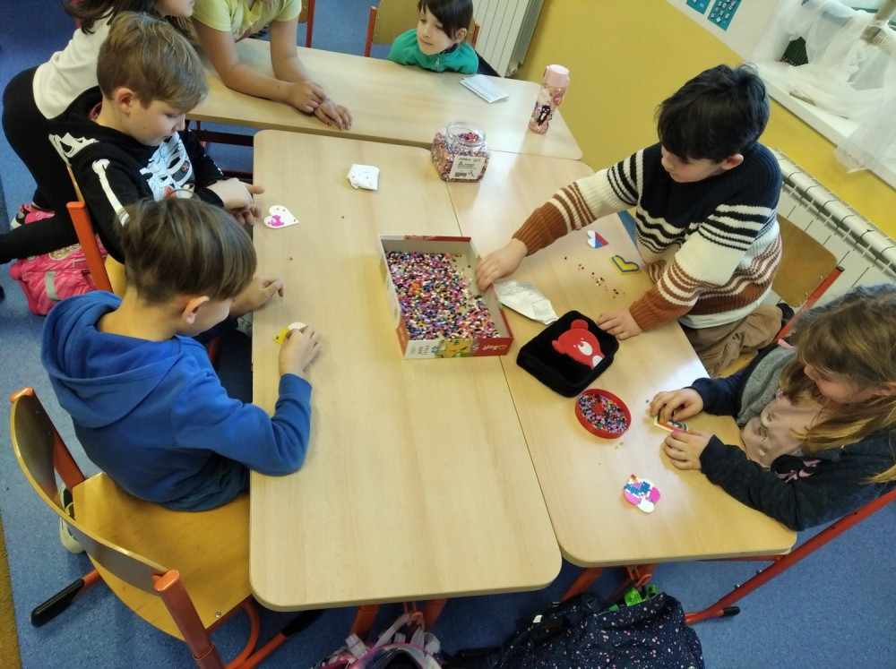 15. 2. 2024 2. oddělení ŠD - zažehlujeme korálky, malujeme na textil, vymačkáváme keramickou misku, navrhujeme karnevalové masky 22 / 2 / 2024 KV