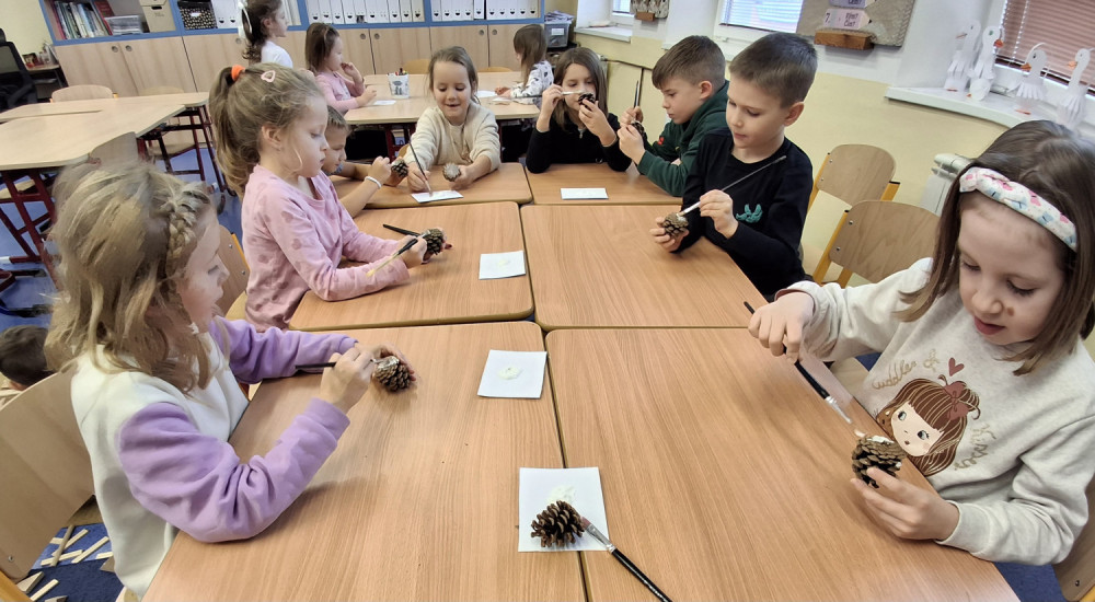 27. 11. 2025 Společně tvoříme ozdobnou šišku, kterou si můžeme pověsit na vánoční stromeček.🙂 27 / 11 / 2025 SkS